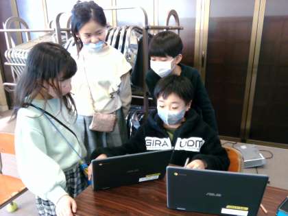 4年生は、来年度からクラブ活動が始まる3年生に、1人1台端末を使ってクラブ活動紹介をしました。これまで、分かりやすいスライドになるように意見を交換し、よりよい紹介になるように工夫しました。3年生は、「どれも楽しそうで決められないな」「入りたいクラブが決まったよ」とクラブ活動を楽しみにする様子が見られました。