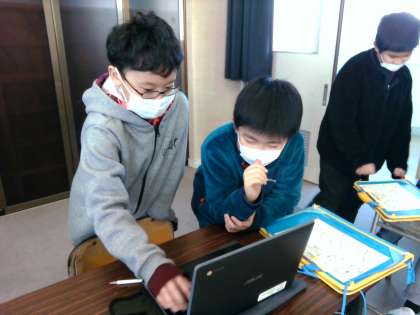 4年生は、来年度からクラブ活動が始まる3年生に、1人1台端末を使ってクラブ活動紹介をしました。これまで、分かりやすいスライドになるように意見を交換し、よりよい紹介になるように工夫しました。3年生は、「どれも楽しそうで決められないな」「入りたいクラブが決まったよ」とクラブ活動を楽しみにする様子が見られました。