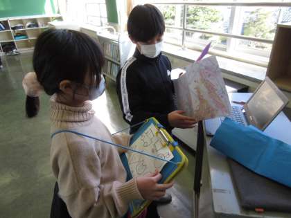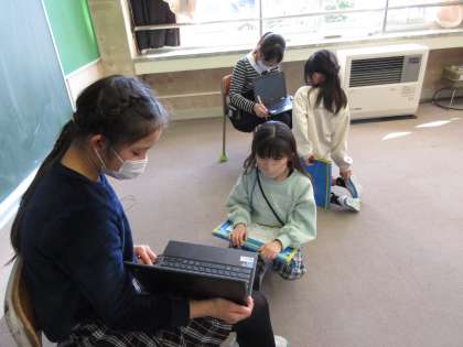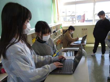 スライドを見せながら、3年生に分かりやすく説明している様子です。