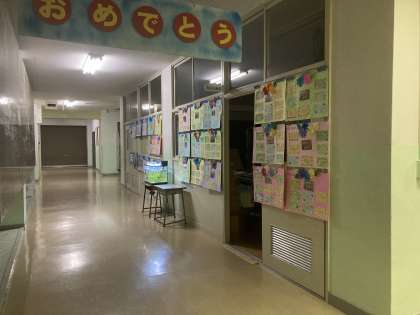 朝登校すると、5年生が準備してくれた、なかよし班からのメッセージが掲示してありました。6年生は、自分の班はもちろん、別の班のメッセージも食い入るように見ていました。