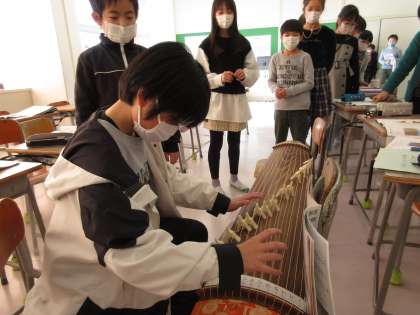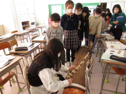 その後、音楽専科の先生が持ってきてくださった琴を弾く体験をしました。