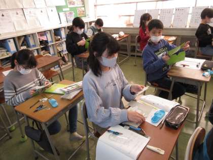 三角柱の展開図を工作用紙(方眼紙)にかく学習です。