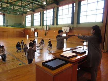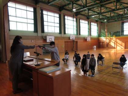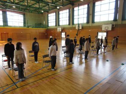体育館に椅子を置き、卒業証書授与の練習をしました。