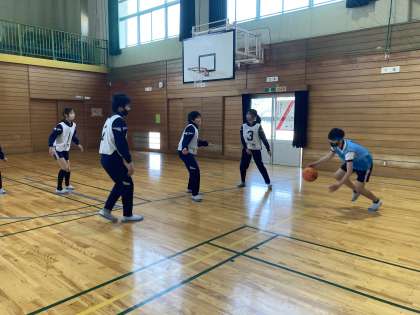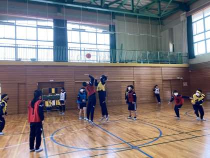 小学校生活最後の体育となりました。最後に行ったのは、バスケットボールです。前回の試合をもとに作戦や課題を各チーム立てて試合に臨みました。