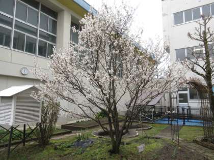 中庭には、さくらんぼのできる桜の木があります。その桜が開花しました。