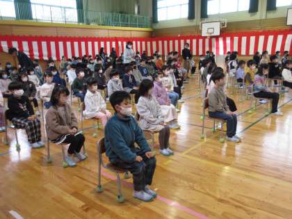 そこで、体育館に紅白幕を張り、初めての全校合同練習を行いました。卒業式の姿勢、合唱、巣立ちの言葉、6年生の退場の練習等です。