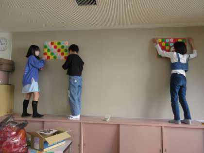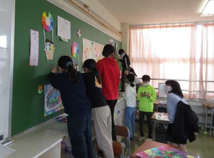 また、6年生の教室内や保護者控え室になるランチルームの飾り付けも行いました。