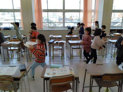 歌に合わせて、手拍子や体を動かして音を表現しました。