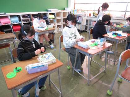 これまで学んだ磁石の特性を生かして、おもちゃを作って遊んでいます。