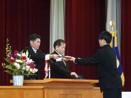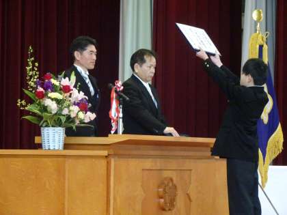 担任が呼名し、元気な声で返事をした後、校長先生から卒業証書を授与してもらいました。