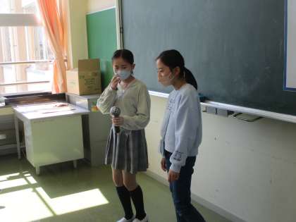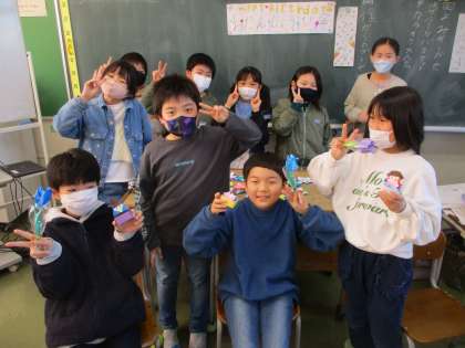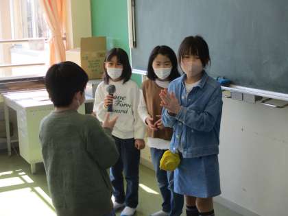 後半は、いろいろな歌をみんなで歌いました。手作りマイクを持って歌うと、さらに盛り上がります。最後にすてきなプレゼントを渡しました。どの係も工夫しており、笑顔いっぱいの誕生会になりました。