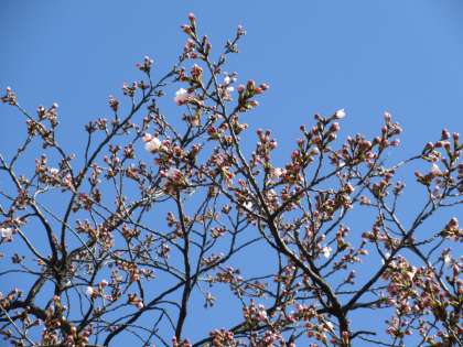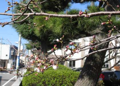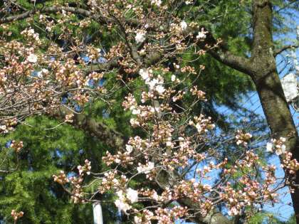 1、2枚目の写真はグラウンドの桜、3枚目の写真は前庭の桜の開花の様子です。