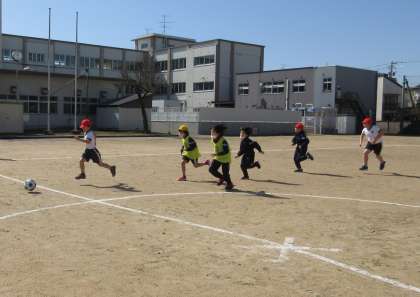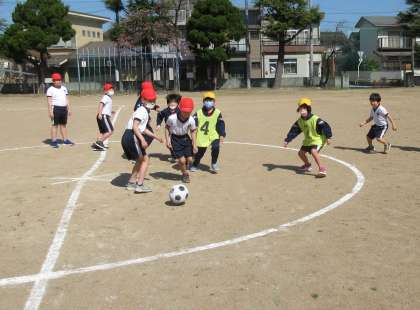 澄み切った青空の下、爽やかな風を感じながら、みんなで元気よく楽しくグラウンドを駆け回りました。
