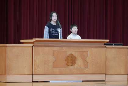 1年生と5年生の児童代表が、今年度を振り返って頑張ったことを発表しました。