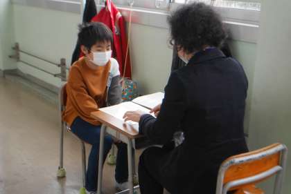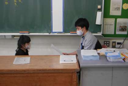 各教室では、担任の先生からあゆみ・修了証をもらいました。