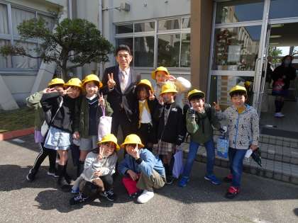 離任式後も、別れを惜しむ姿が見られ、玄関で記念写真を撮影したり、お別れの挨拶をしたりしました。