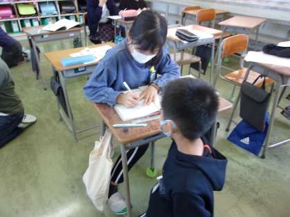 5年生での初めての国語の学習です。いろいろな友達に2分間でインタビューしました。