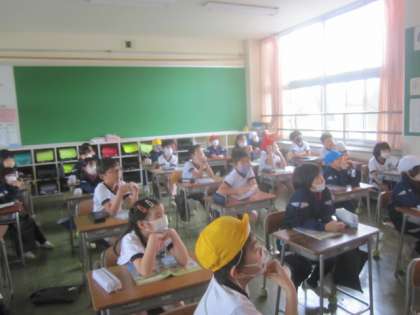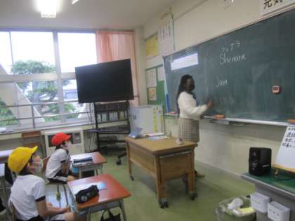 3年生になって初めての、外国語の学習を行いました。ALTの先生と世界の国々のあいさつについて教えてもらい、実際に発音しました。