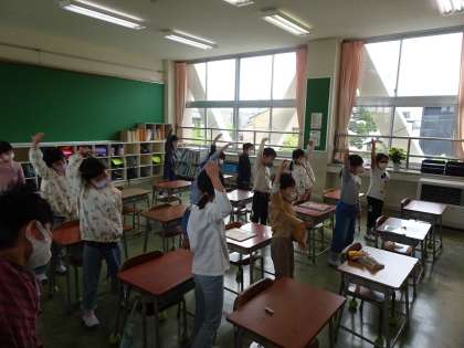 今年度の「やなトレ」が始まりました。当面は、動画を見ながらラジオ体操を行います。