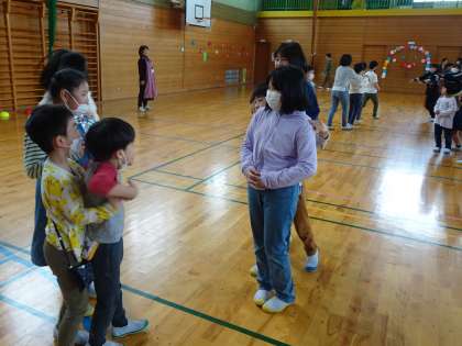 6年生は、ゲームをしました。じゃんけんをして負けたら、相手の後ろにつながっていきます。とても盛り上がりました。