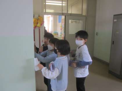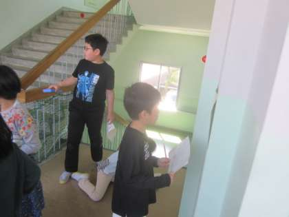 サンサンタイムに給食委員会が企画してくれた、「給食マスタークイズラリー」に参加しました。友達と相談しながら答えを導き出しました。