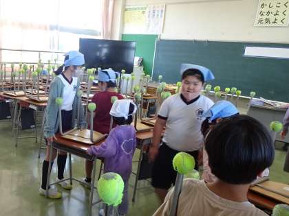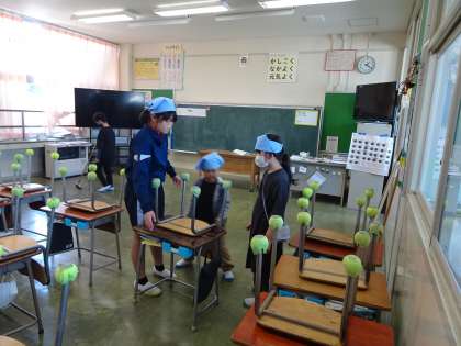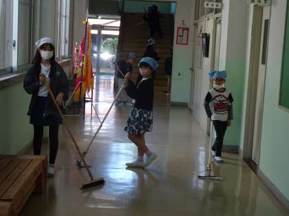 本校の特色の一つである縦割り活動の一環として、なかよし清掃が今日から始まりました。高学年の児童がリーダーとなって、下学年の児童に仕事分担、清掃方法をやさしく教えています。
