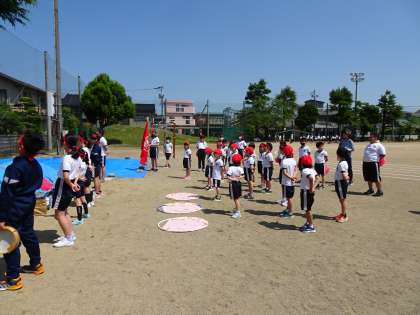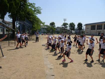今日はグラウンドで、水分補給を随時行いながら応援練習を行いました。各団ともに、気合いが入っています。