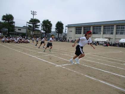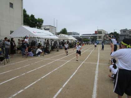 これまで朝の時間を使って走るトレーニングをしてきた子供たち。結果を本番までの楽しみにしておきたいと言ったため、同じ組の子供たちと一斉に走るのは今日が初めてでした。ピストルの音で勢いよく走り出し、最後まで一生懸命走ることができました。