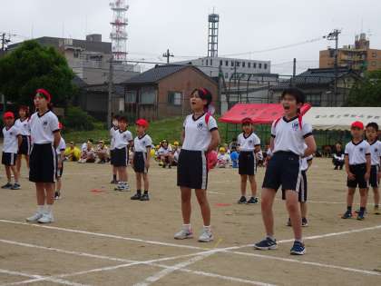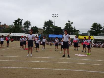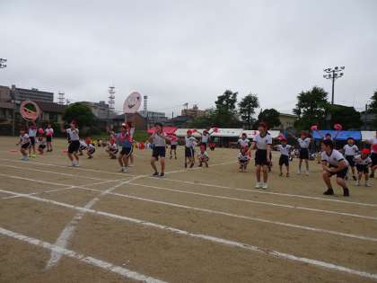 続いては赤団の応援です。こちらもゲームのキャラクターが活躍しました。全員楽しそうに応援しました。