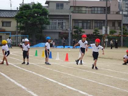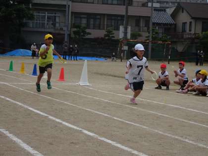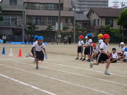 トラック半周という長い距離を駆け抜けて、仲間につなげました。