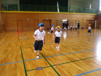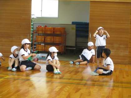体育では、しっぽとり鬼ごっこを楽しみました。しっぽを取られにくい逃げ方についてみんなで話し合ったり、上手に逃げている友達の動きを観察したりしました。