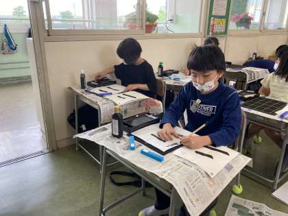 筆のほ先の向きに気をつけて「二」を書きました。「トン・スー・トン」というイメージでなぞり書きをしてから実際に書きました。