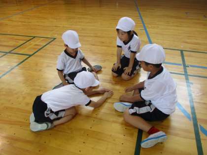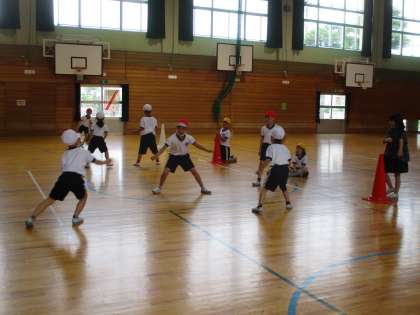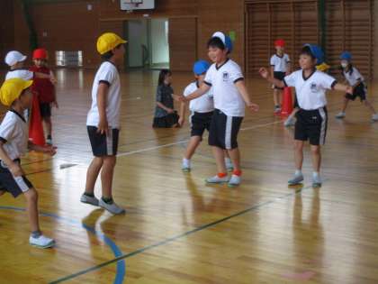 体育の学習では、宝とりおにをしました。敵のチームにタッチされないように宝の場所に行くためにはどうしたらよいのかをチームで話し合いました。みんなで3、2,1とカウントして一斉に駆け抜ける作戦、おとり作戦等わくわくしながら試していました。