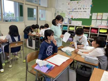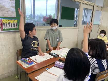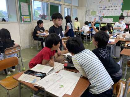 話し手は、友達に知らせたいことを考えて伝えます。聞き手は、友達の話を聞いて質問します。もっと知りたいことについてお互いに、たくさん質問し合いました。