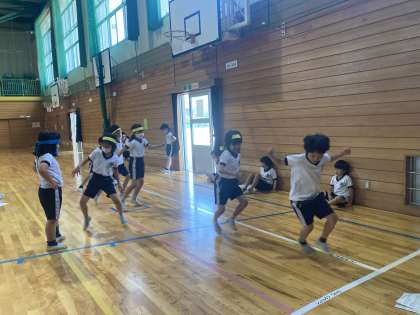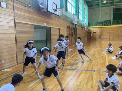 新体力テストの反復横跳びを行いました。目標を事前に決定して挑み、前回より記録が伸びる子供たちが多くいました。
