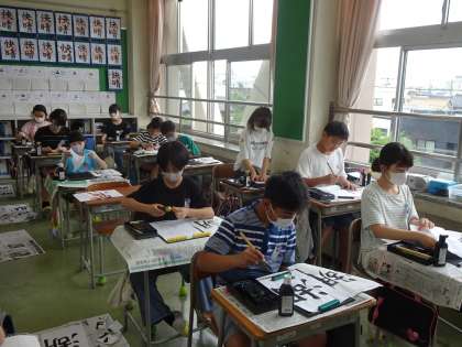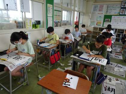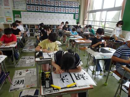 3つの部分でできている漢字として、「湖」を書いています。さすが6年生、お手本を見ながら上手に書けました。