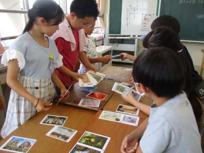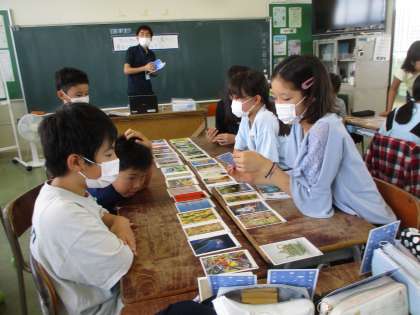 図画工作科では、アートカードを使って鑑賞を楽しみました。作品名を聞いてどの作品かを考える活動では、作品の細かい部分にも目を凝らし、友達と意見を交わしていました。