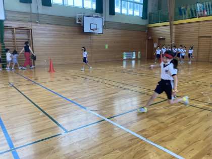 ゴム糸を使って各団回ったり、曲がったりする走路を作りました。作った走路を、何秒で走り切るか計測して競いました。