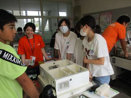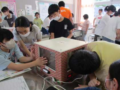 LIXILさんに来て頂き、「健康と環境によい住まい方」の授業をしていただきました。模型を使って、通風や断熱について体感し、自然の力を生かした住まい方の工夫について知ることができました。