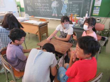 長い夏休みが終わり、2学期がスタートしました。夏休みの出来事をグループで話しました。久しぶりに顔を合わせた友達との会話がはずんでいました。