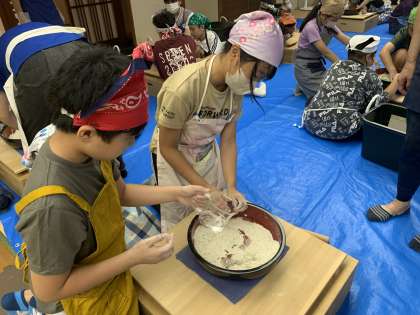 8/31 (木) 6年生 集団宿泊学習 「そば打ち体験1」