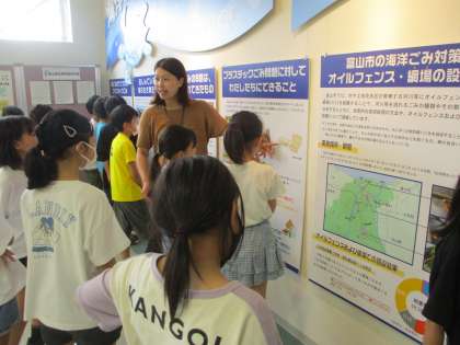 最後は、エコタウンに行って市役所の方の特別授業を受けました。子供達は真剣に話を聞き、熱心にメモを取る姿が見られました。近年の調査によると、富山湾のごみは8割が陸地から流れ着いたものだそうです。