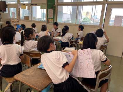 漢字ドリルで進めた漢字の読み方や書き順を、ペアの友達と出題したり、答えたりしました。楽しく振り返る様子が見られました。