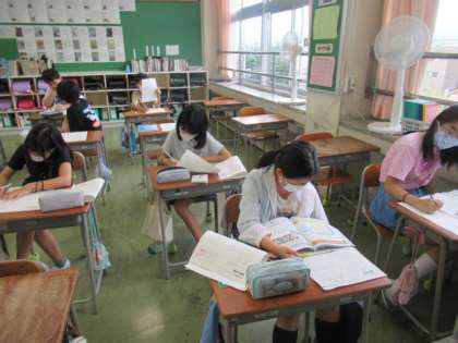教科書の学習が終わり、今日は自分に合った難易度のプリントを選択し、復習に取り組みました。静かに、一生懸命に取り組む人が多く、時には自分で教科書を確認しながら問題に取り組んでおり、嬉しい気持ちになりました。