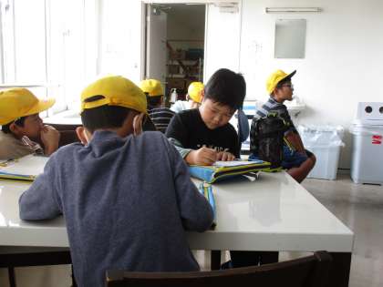 バックヤードの見学後は、質問タイムになりました。子供たちが事前に考えた質問に答えていただきました。子供たちはメモをたくさんとりました。
