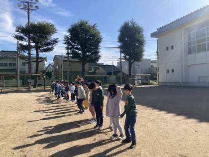 影は時間によってでき方が変わることを検証しました。午前と午後では、どの向きに影ができるか予想した後に、実際に外に出て影のでき方を確認しました。