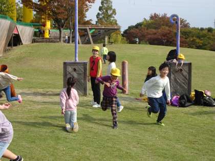 稲荷公園では、班ごとに決められた場所に移動し、元気いっぱいに、なかよく遊んでいました。秋の自然を楽しんだり、友達との交流を楽しんだり、安全に遊んだりなど、出発前に目当てとしていたことを、しっかりと達成することができた一日でした。