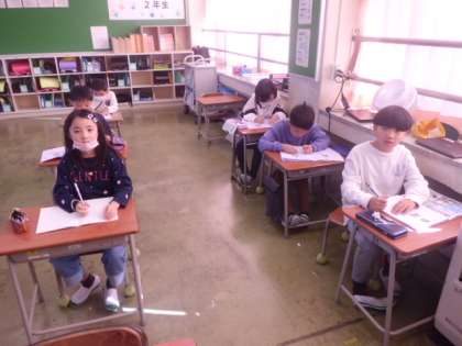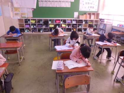 漢字練習の様子です。1ミリもはみ出さないように丁寧に書いています。ノートに間違えやすい漢字を書いたり、まとめのテストで力試しをしたりしました。