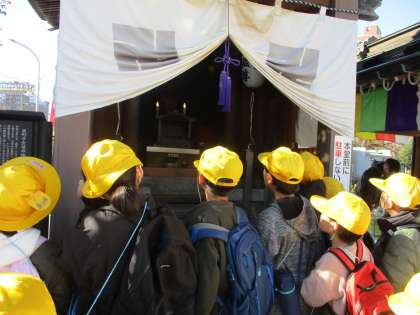 延命地蔵尊に行きました。なぜ、延命地蔵尊と呼ばれているのかを確認し、水を汲みに来た人へインタビューもできました。