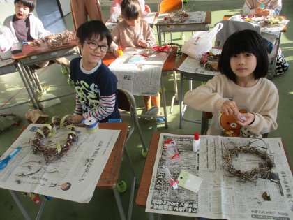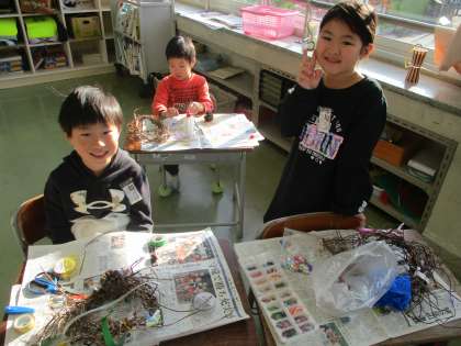 大事に育てたあさがおをリースにしました。順次持ち帰ります。
